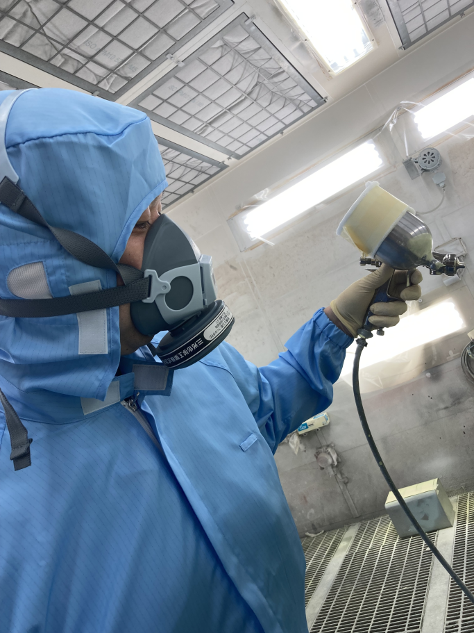 熟練の職人による吹付塗装、微細な補修を行うタッチアップなど、すべての工程で高い精度と美観を追求しています。