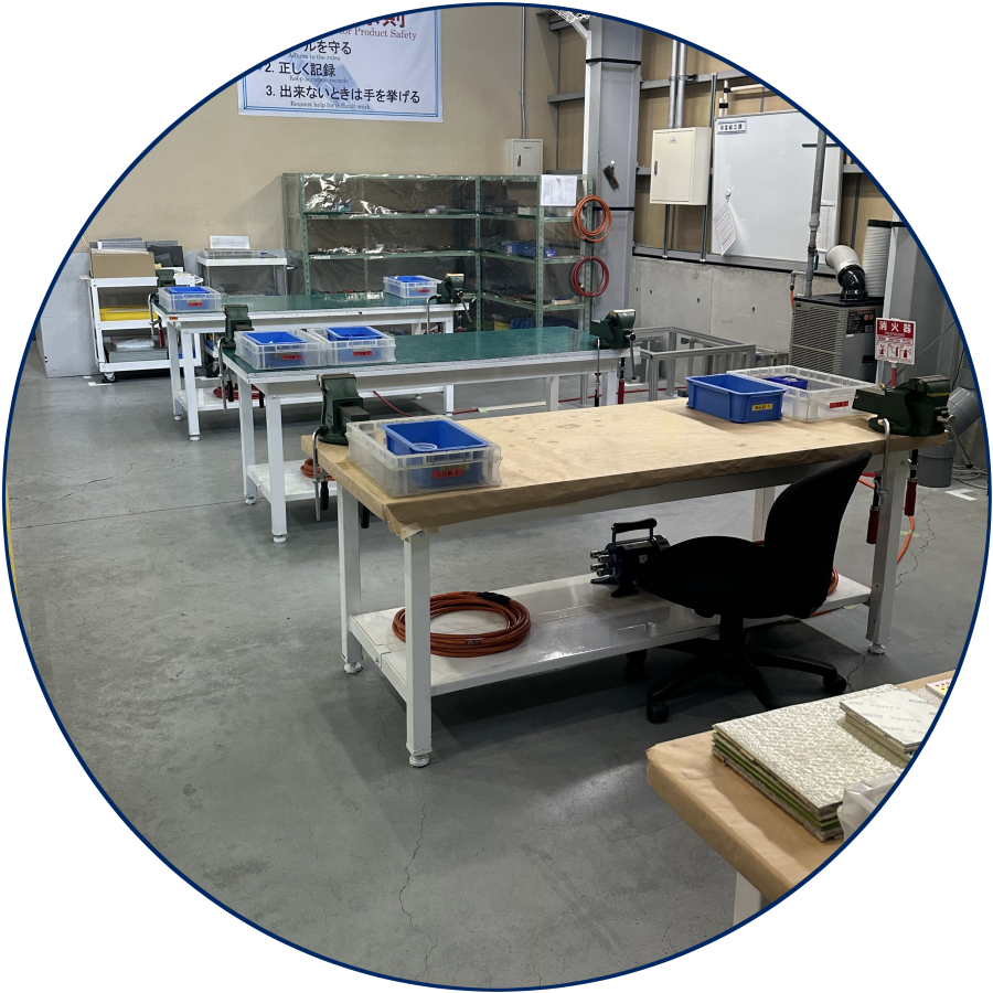 新入社員は、入社式後、1週間社員教育/研修をします。 会社の規則や、社会人としての基本的なマナーを習得します。 その後、組立実技教育を実施した後、各現場でOJT教育を行います。