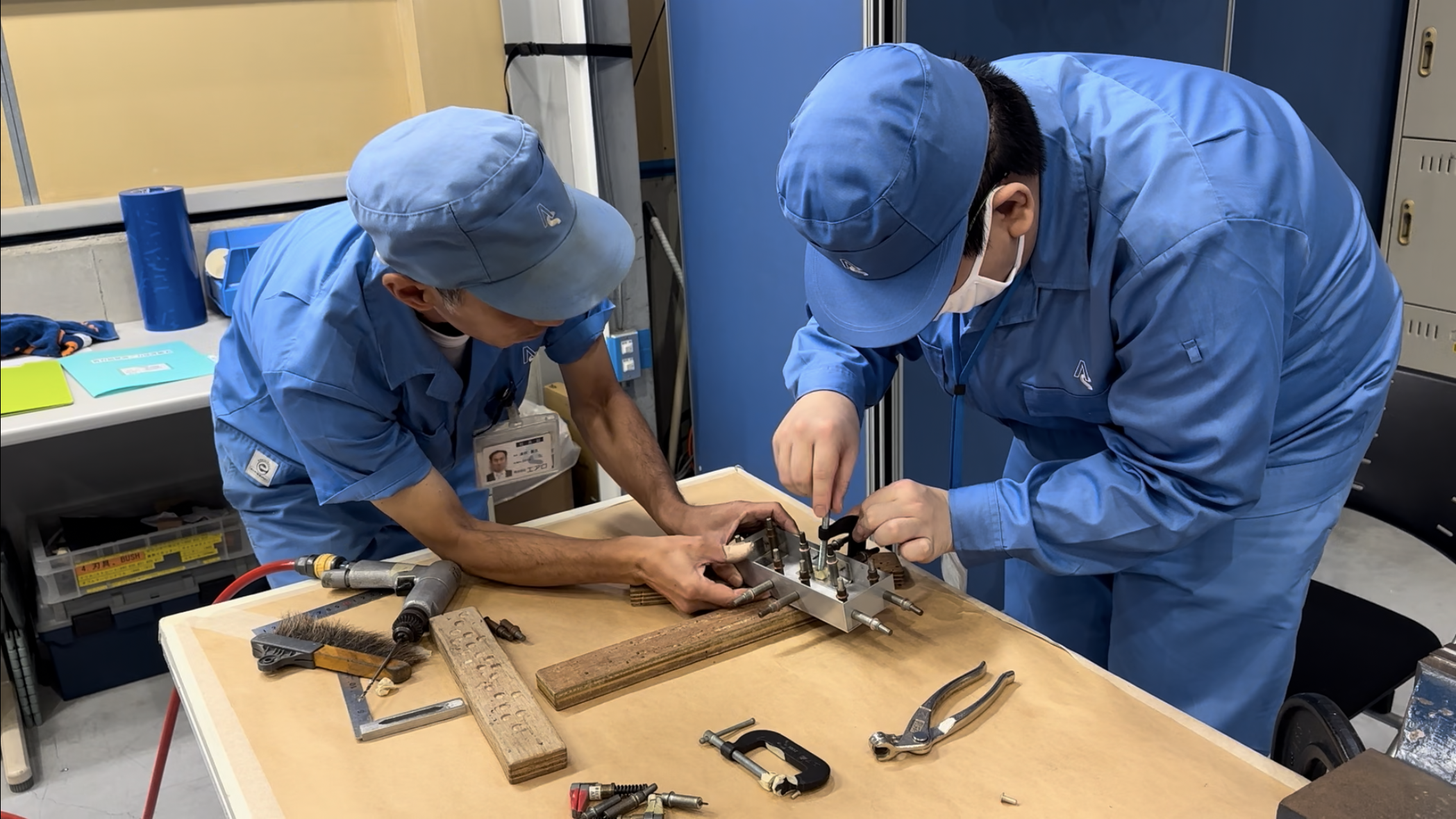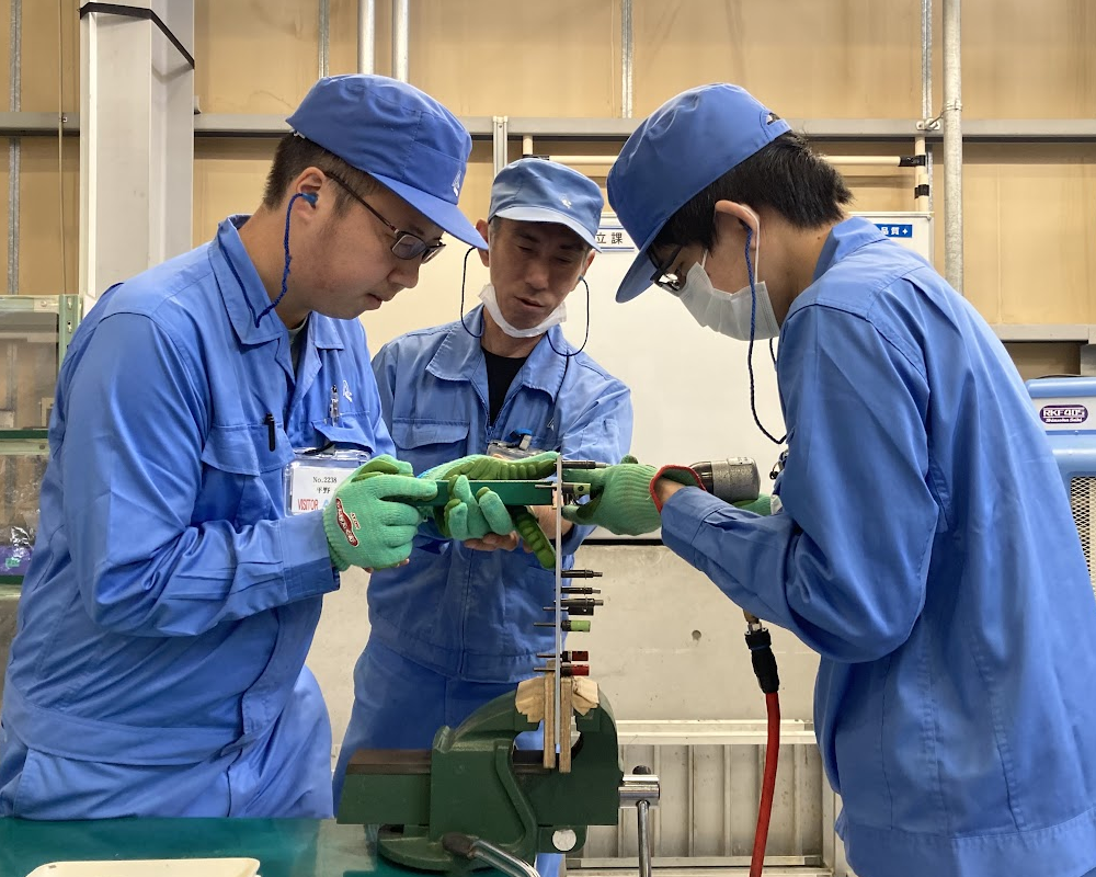 打鋲作業の実技訓練